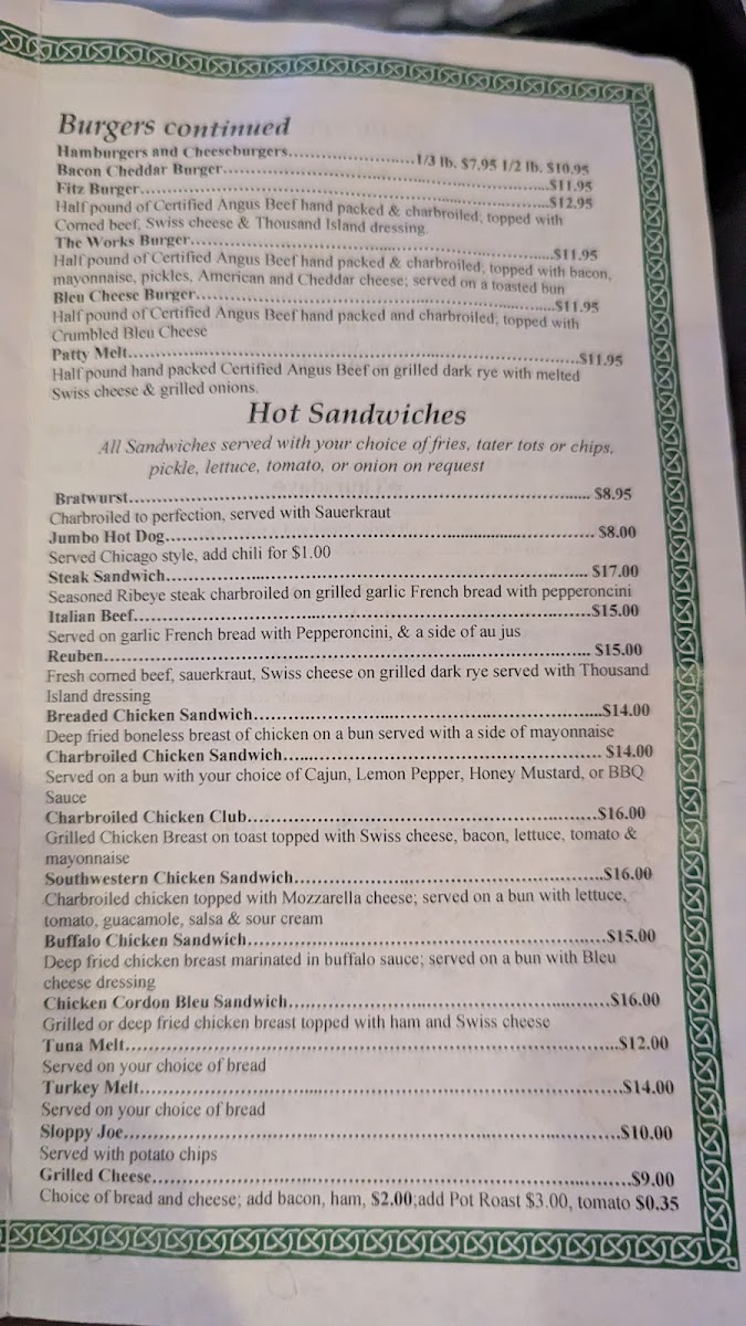 Whether you're stopping by for a cold beer alongside crispy wings and fries, settling in for a hearty plate of pot roast or jumbo deep-fried shrimp, or craving a well-stacked burger like the Fitz Burger or a blue cheese burger, the menu adapts well to any laid-back afternoon or evening. There’s also a range of sandwiches and lighter options like homemade chicken or tuna salad that fit well for midday meals or a quick bite with drinks.