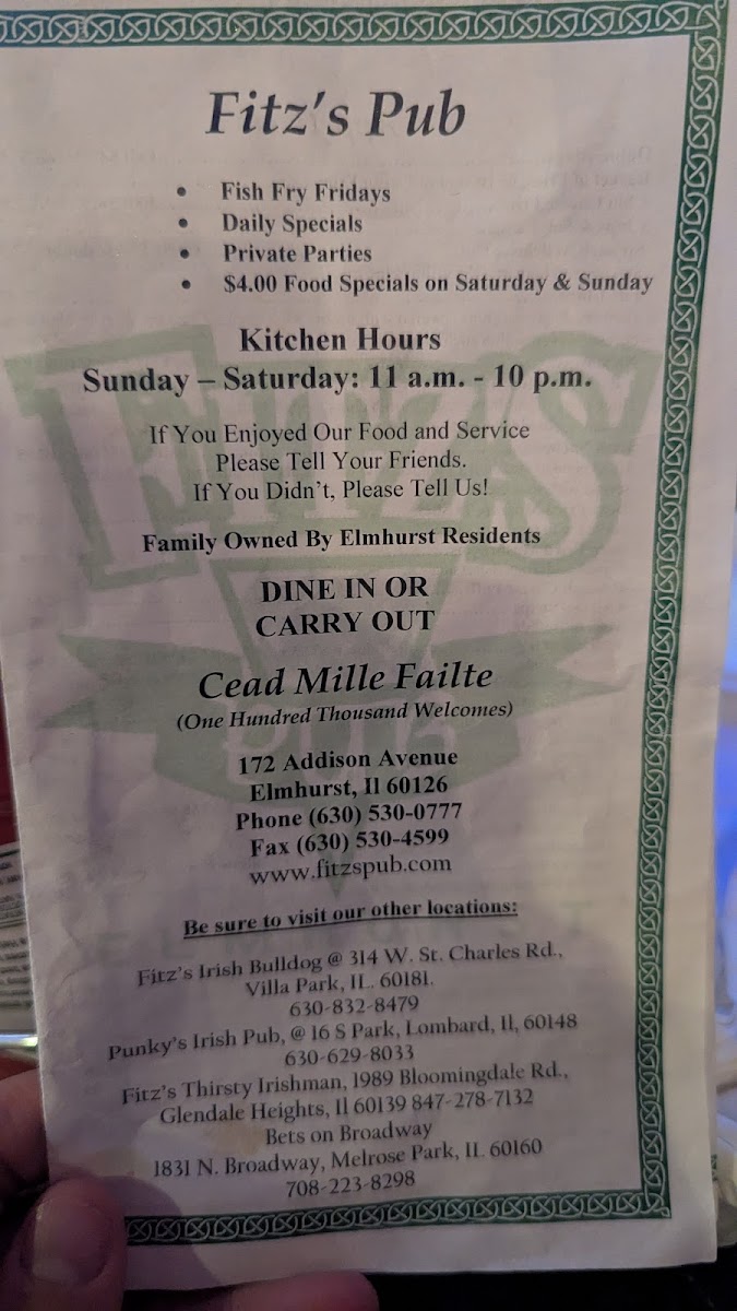 Fitz's Pub Menu